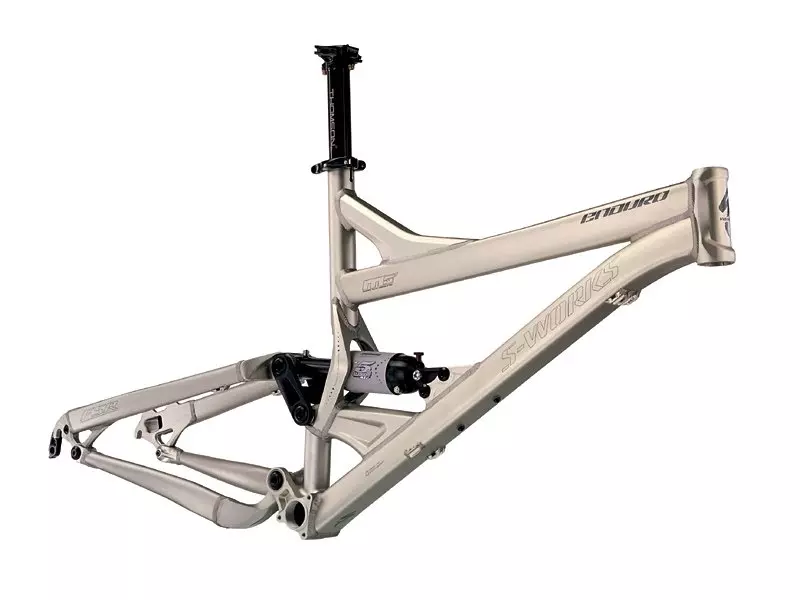 All-new M5 TT and DT, low center of gravity Enduro FSR frame with ORE technology DT and TT, forged HT, pierced seat tube, sealed cartridge bearings, ISCG mount, two forward shock mounts for geometry adjustment, replaceable derailleur hanger, derailleur guard