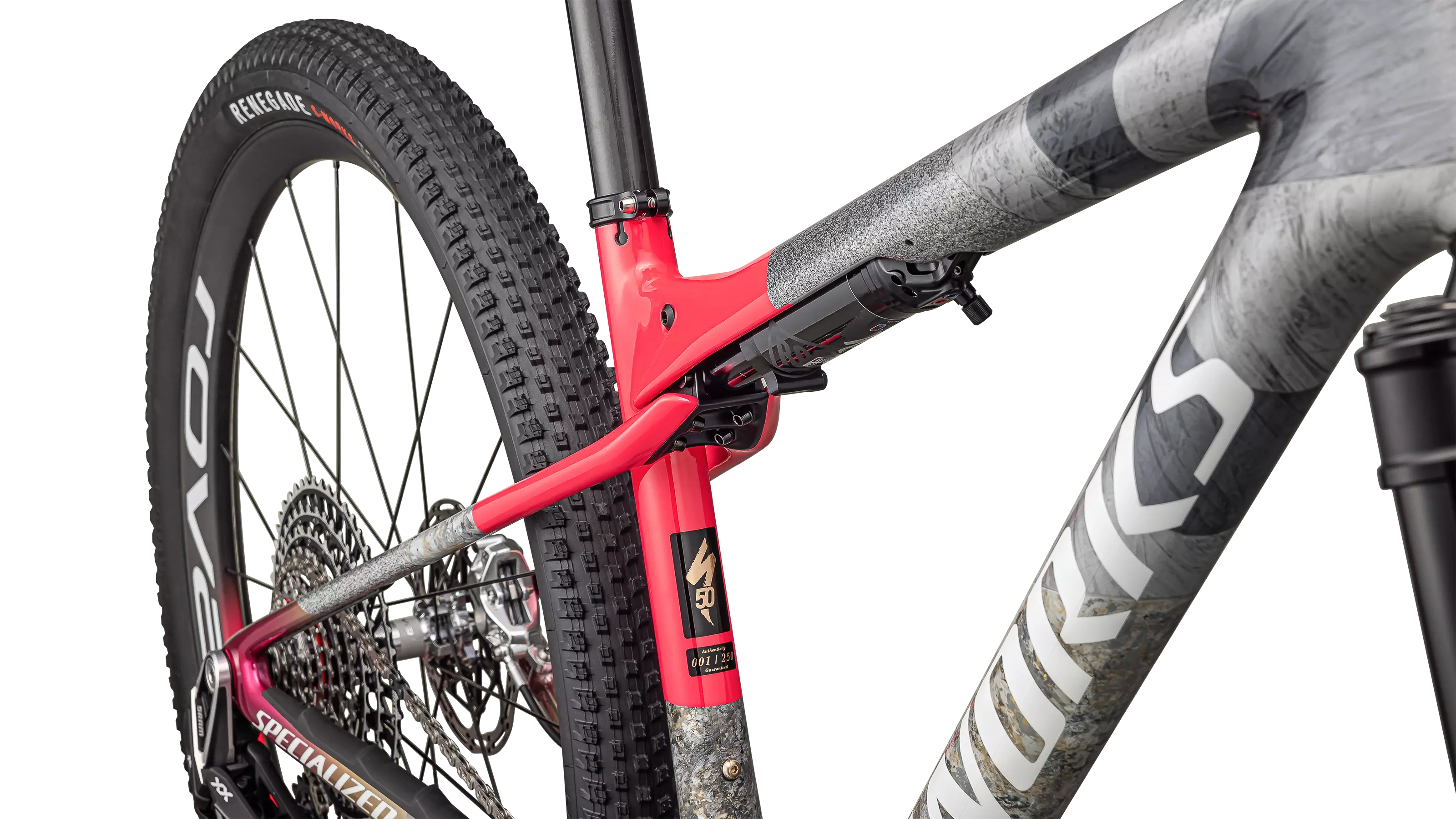 The Forward 50 LTD comes together in a stunning graphic: gold represents our 50th year, while pink recalls our historic Team Stumpjumper and our commitment to racing with an irreverent, rebellious spirit.