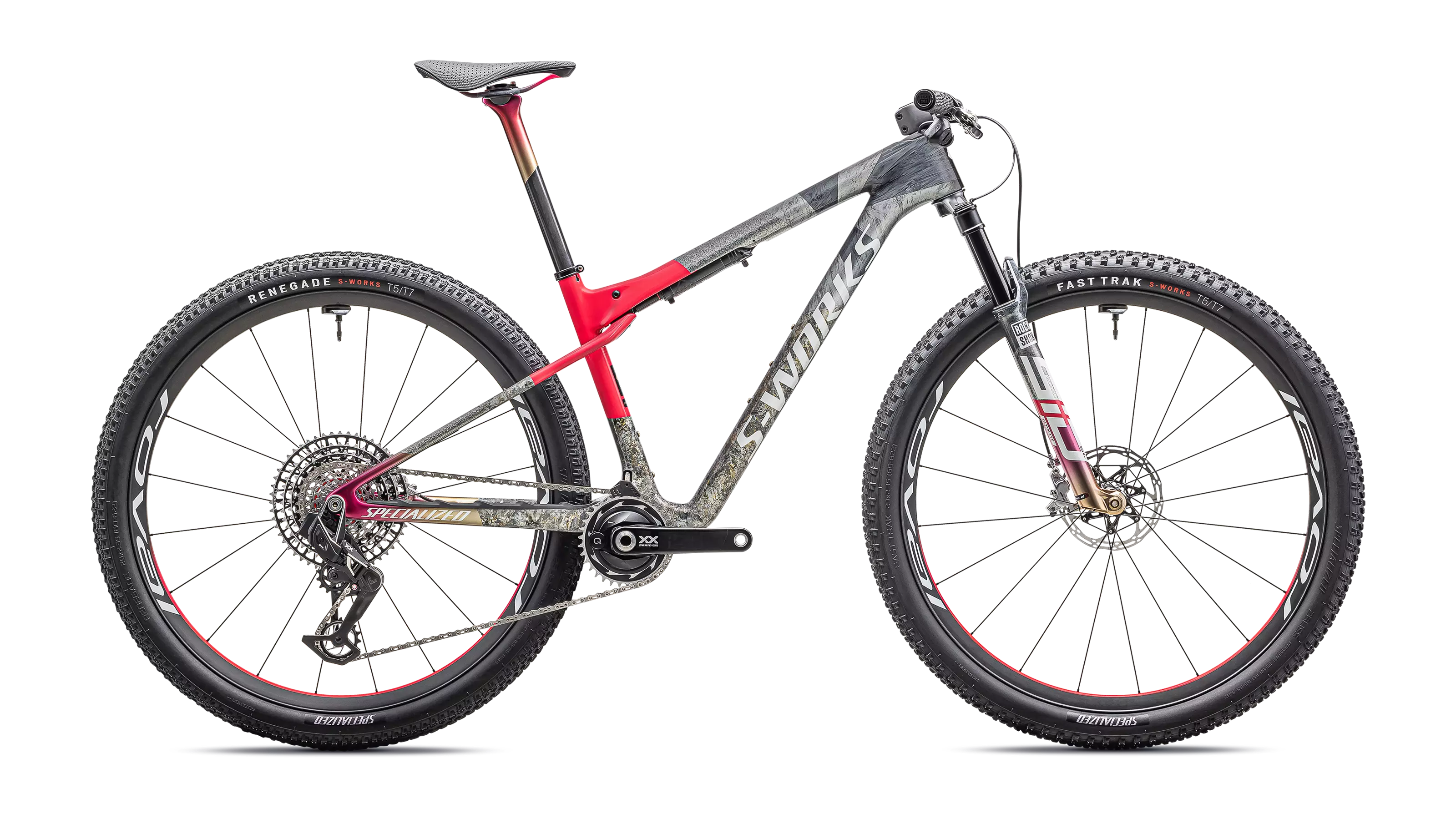 These unique bikes are delivered with the best of the best: Specialized/RockShox SIDLuxe WCID rear shock, RockShox SID SL Ultimate 3P fork, Roval Control SL Team wheelset, Roval Control SL integrated cockpit, Roval Control SL seatpost, S-Works Power with Mirror saddle, and CeramicSpeed DUB bottom bracket—ensuring these bikes go as fast as they look.