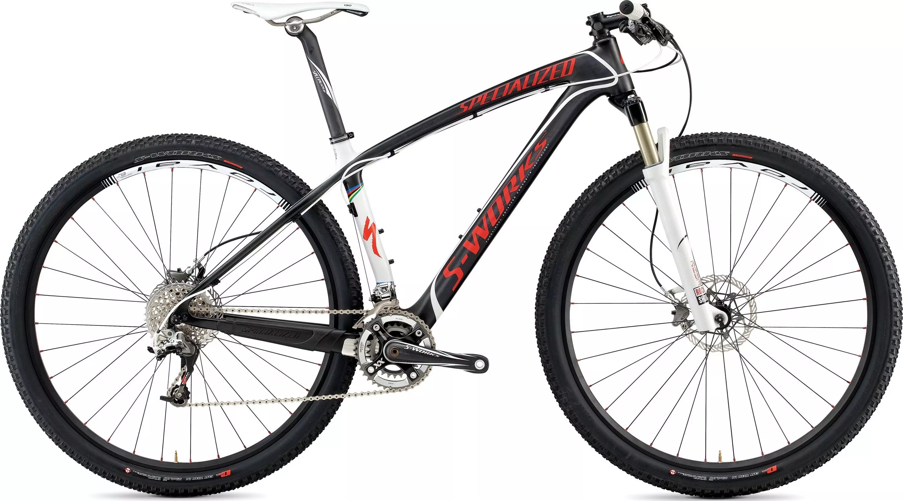 Light and lean S-Works Stumpjumper HT 29er FACT 10m carbon frame is engineered with a stiff, tapered head tube and 29" race geometry for pure speed