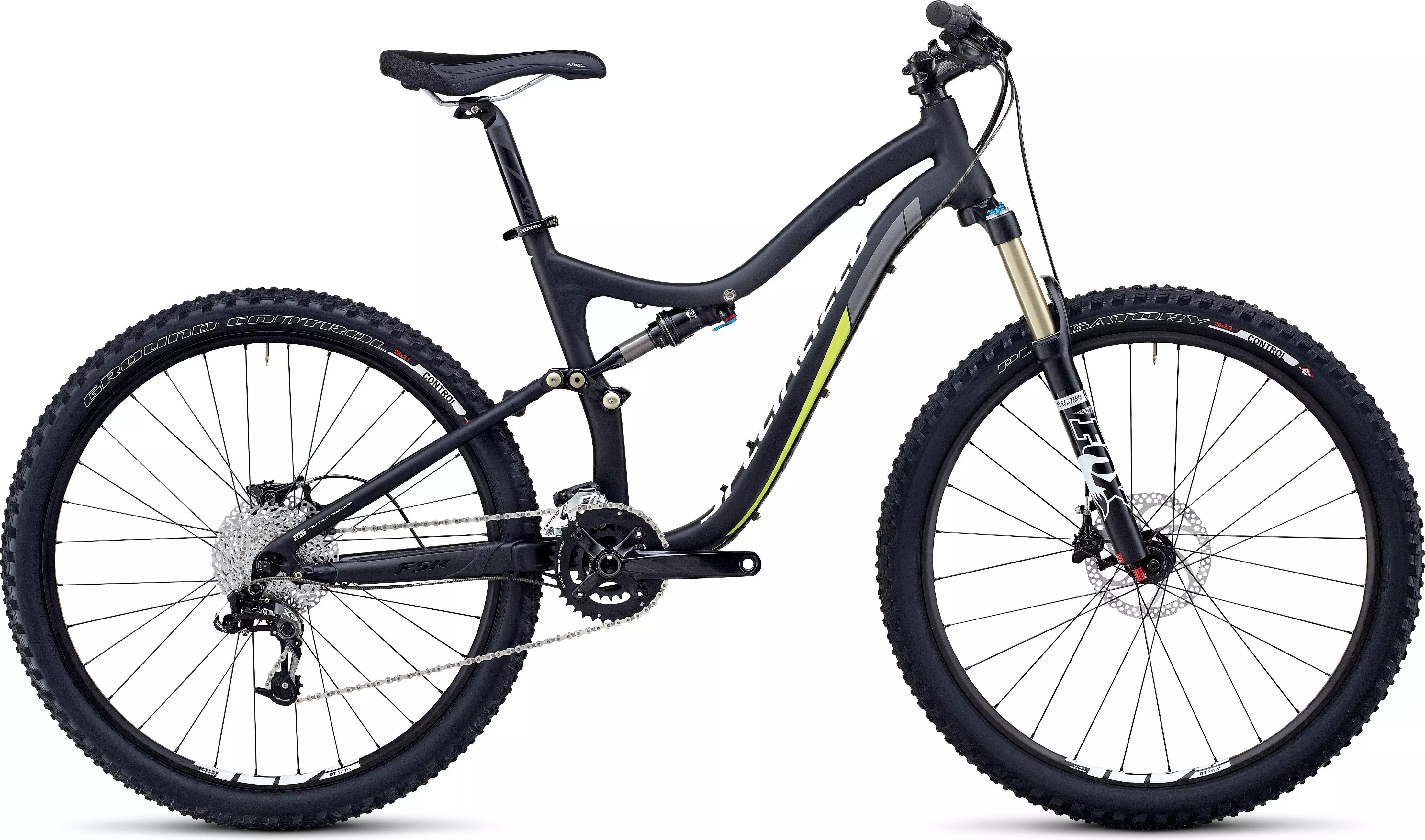 The aluminum Safire FSR Comp features 120mm of FSR suspension, a custom Fox Float CTD Evolution rear shock with AUTOSAG, Fox Evolution Float CTD Evolution air-sprung fork, and Formula C1 hydraulic disc brakes for an ultra-capable women's trail bike.
