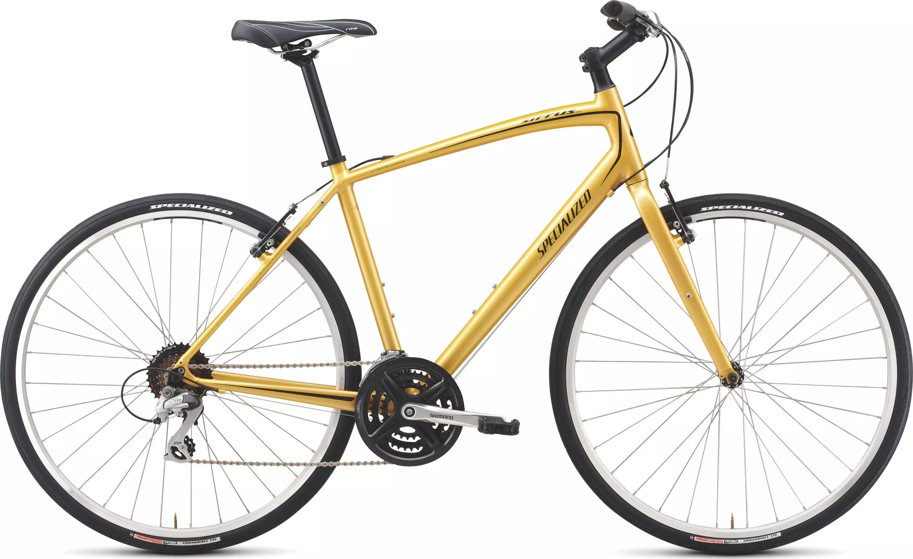 The speed and versatility of the Sirrus Sport is ehanced by a lighter alloy fork and improved Shimano shifting.