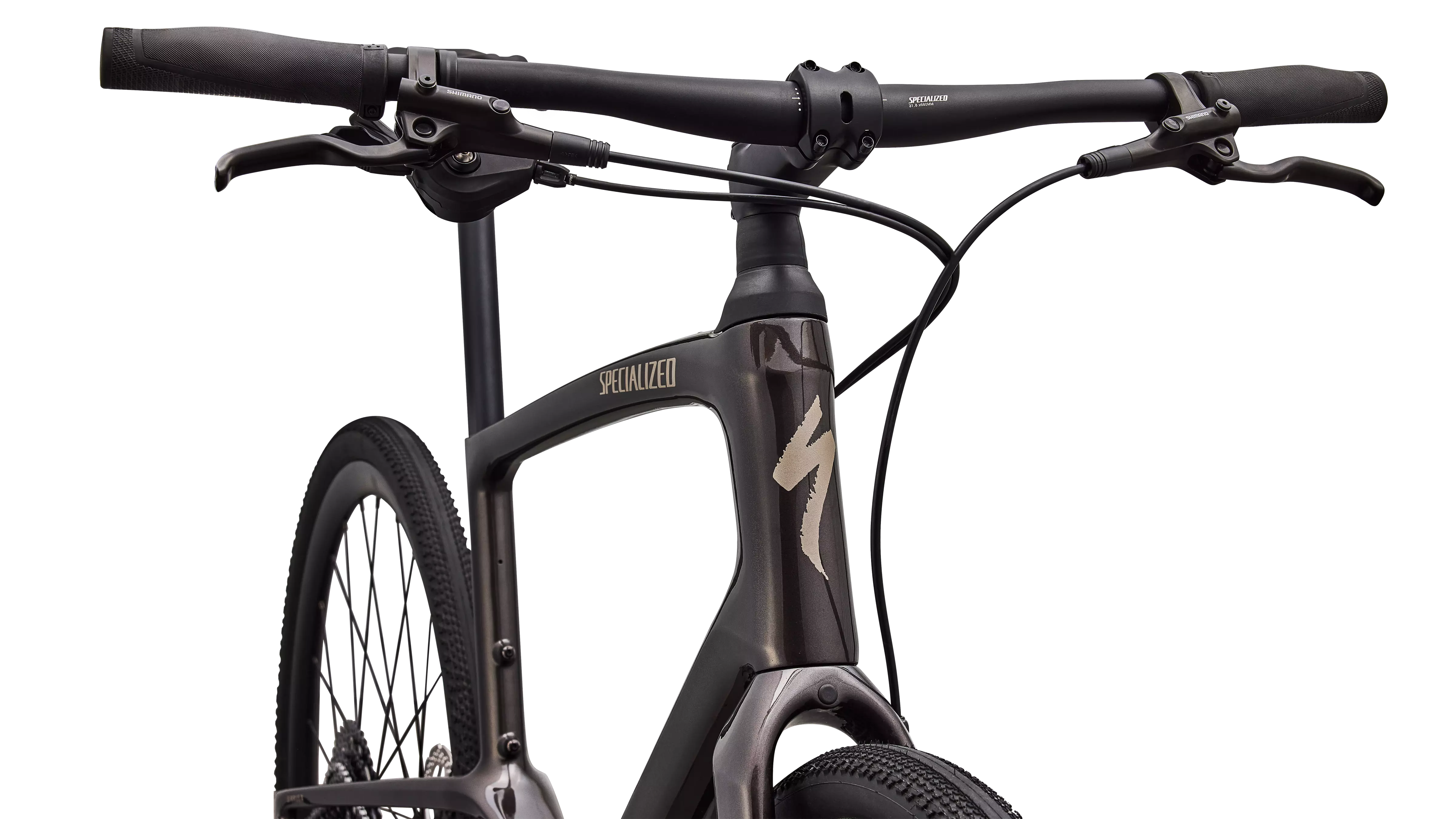 Shimano hydraulic brakes with large 160mm rotors provide reliable stopping power on- and off-road.
