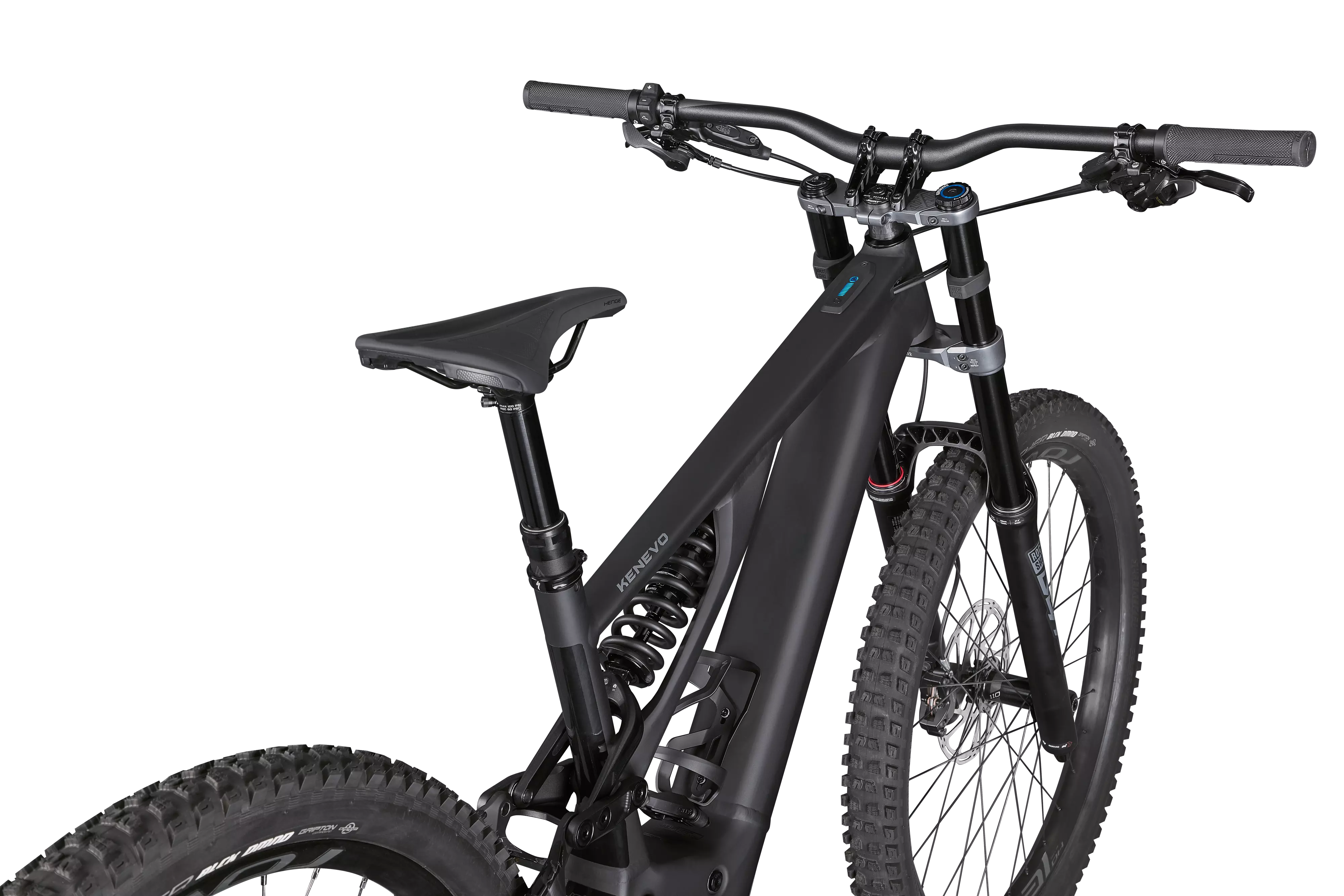 The completely redesigned alloy Kenevo frame features an M5 alloy front- and rear-end, an asymmetrical Sidearm design, and a new axle path and leverage curve that give the bike insane levels of control in the most challenging trails.