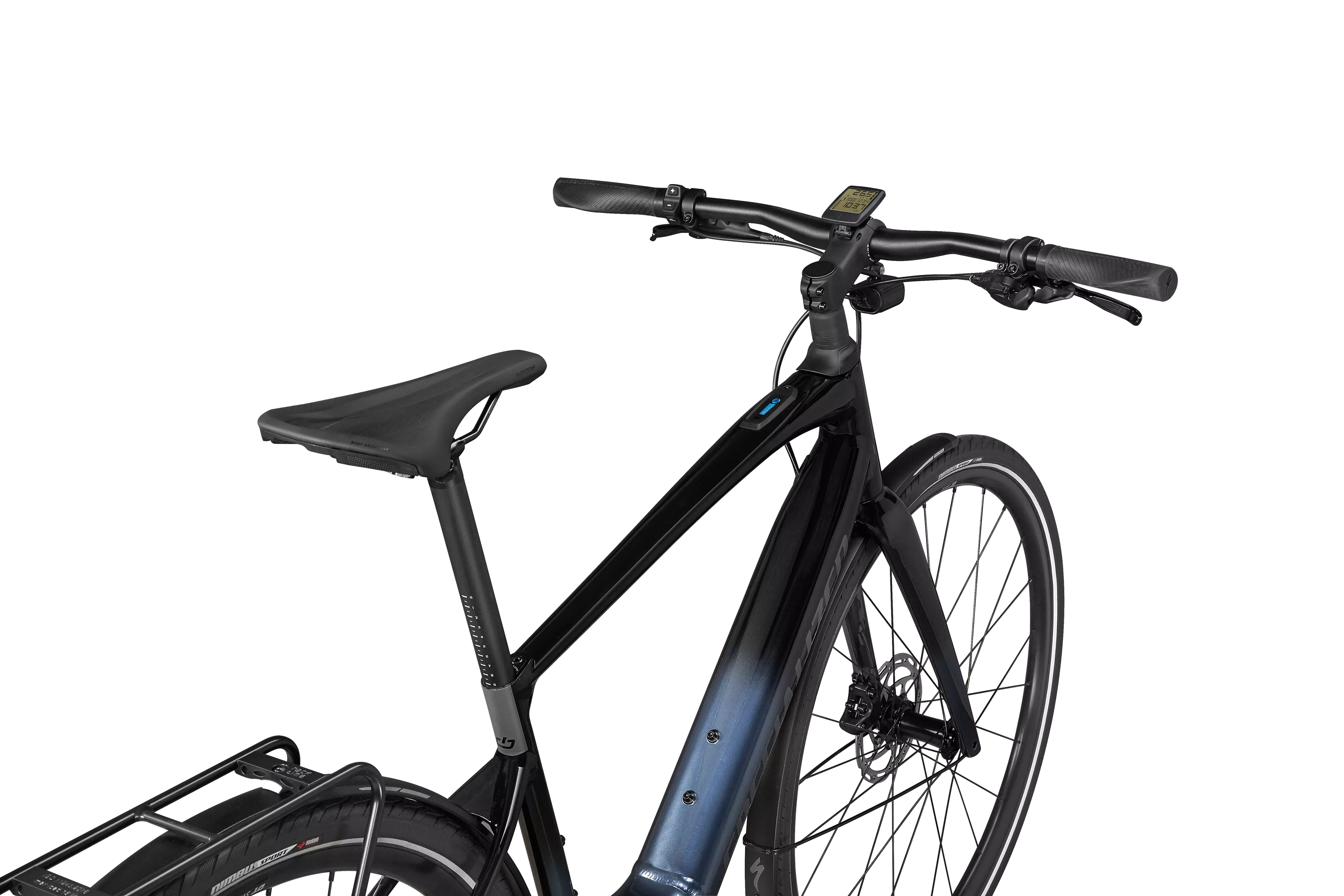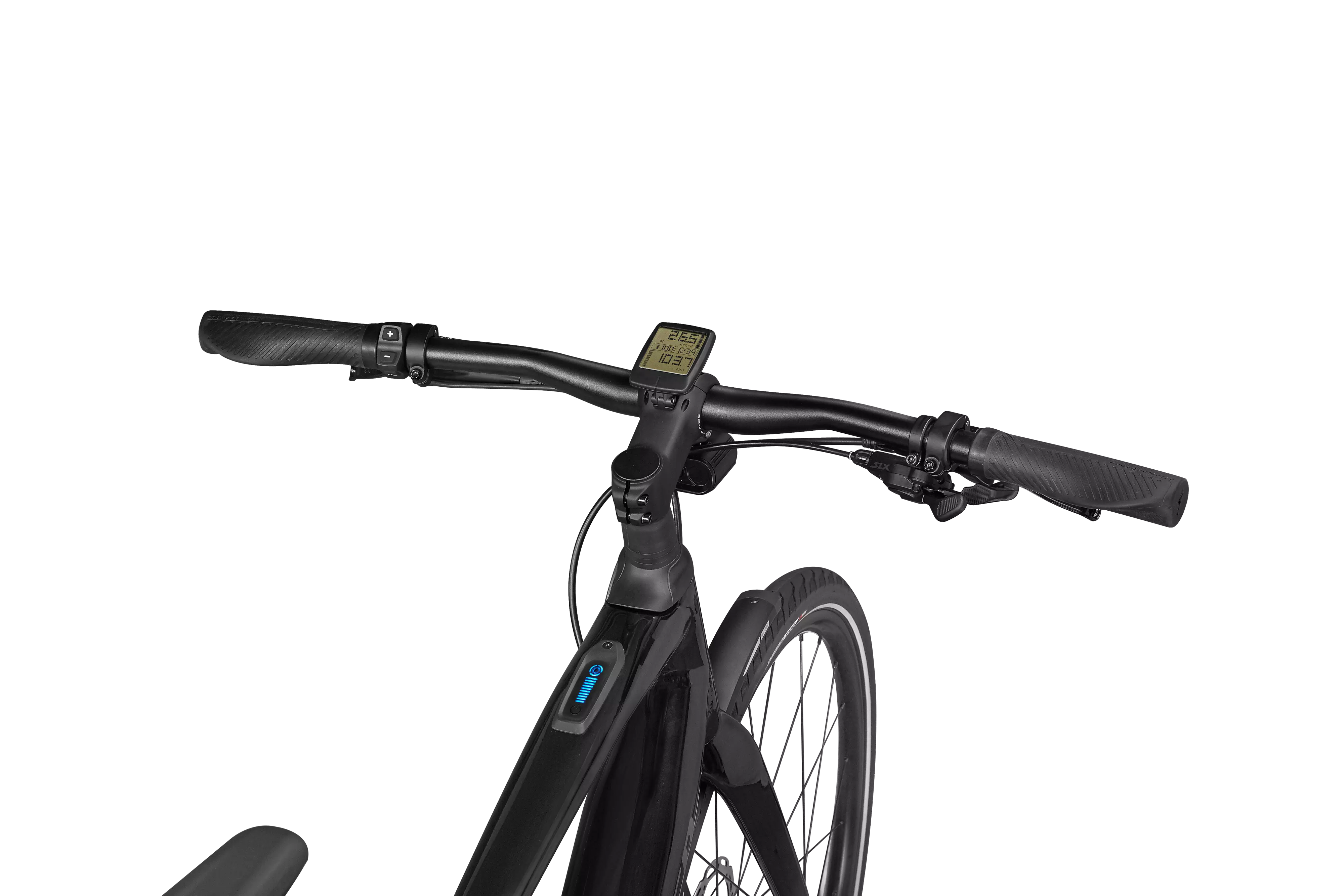 Fully integrated and secure Specialized 320Wh downtube battery w/optional Range Extender compatibility for up to 120 miles of range.