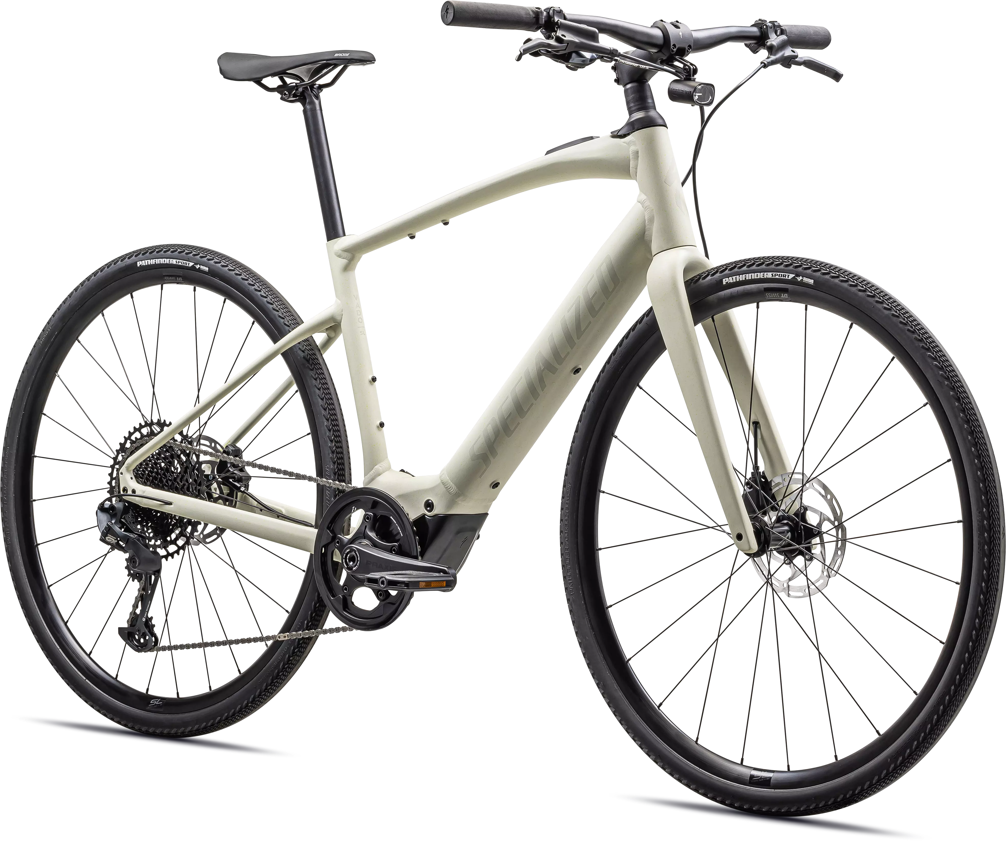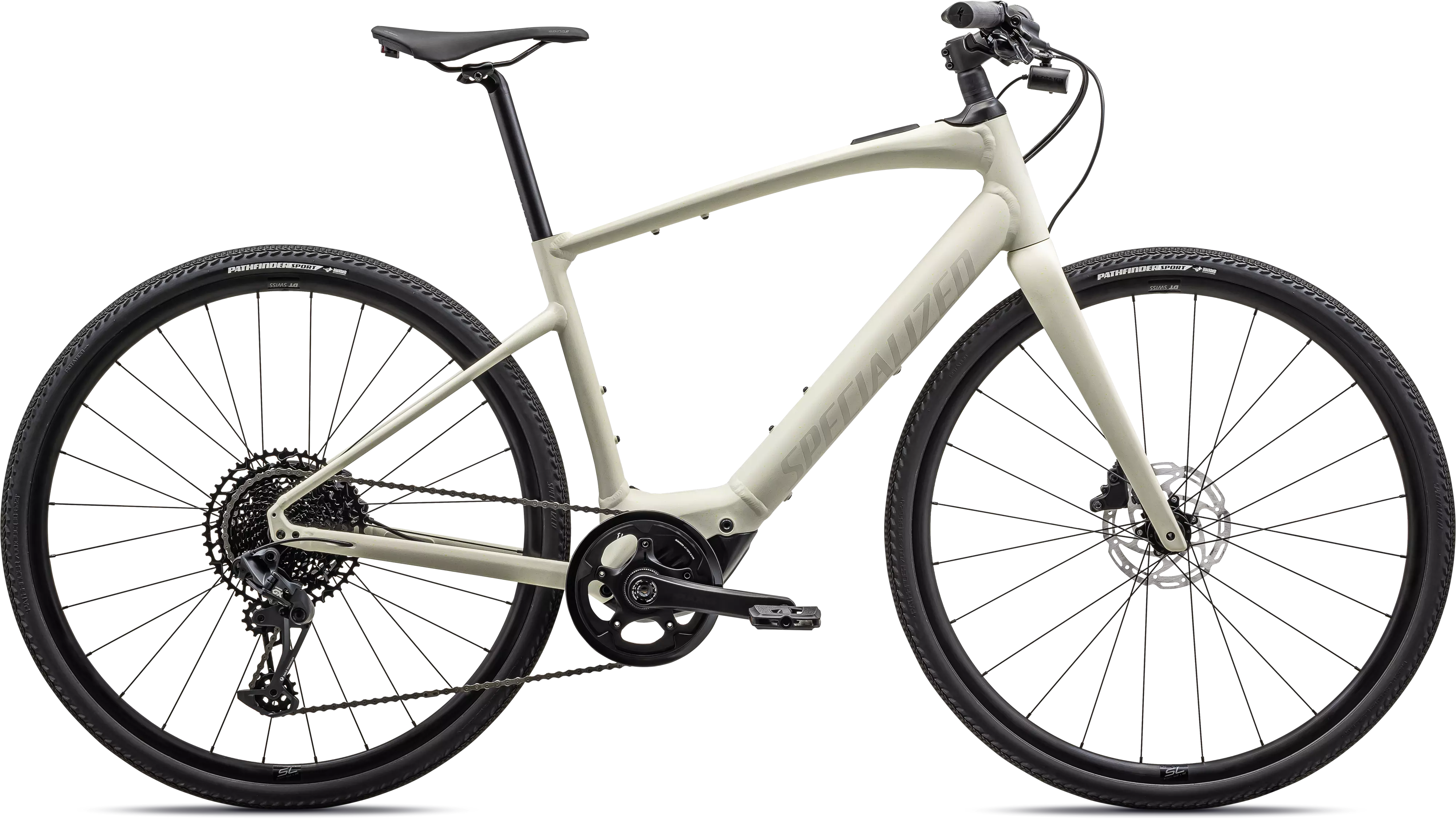 Float over the rough stuff with DT Swiss R500 disc wheels paired with fast-rolling, high-grip, Specialized Pathfinder 38c tires, featuring proprietary GRIPTON® rubber compound.
