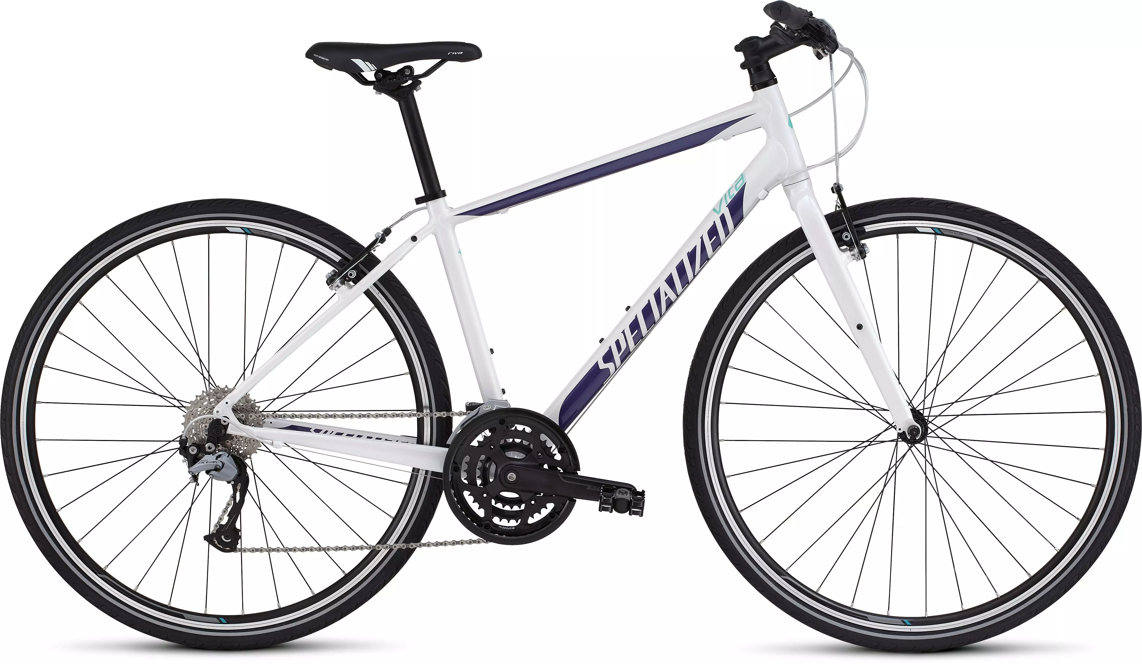 Ergonomic and size-specific components including crankset, women's handlebars/grips, and women's Body Geometry saddle at contact points ensure a comfortable, confident ride.