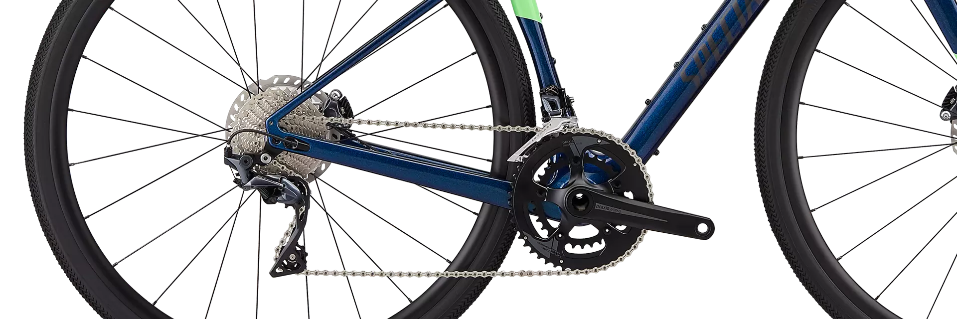 Next up, we moved away from a traditional ‘cross geometry, instead opting for something that hasn’t been seen before—our Open Road Geometry. You can think of it as a road version of modern trail bike geometry. It provides playful handling and predictable steering for endless dirt skids and mid-corner drifts. The geo features a bottom bracket that's over a half-centimeter lower than the previous Diverge, a slacked-out head tube angle, short chainstays, and a short wheelbase. These changes make for a bike that's not only fun in the dirt, but also performs well on the road.