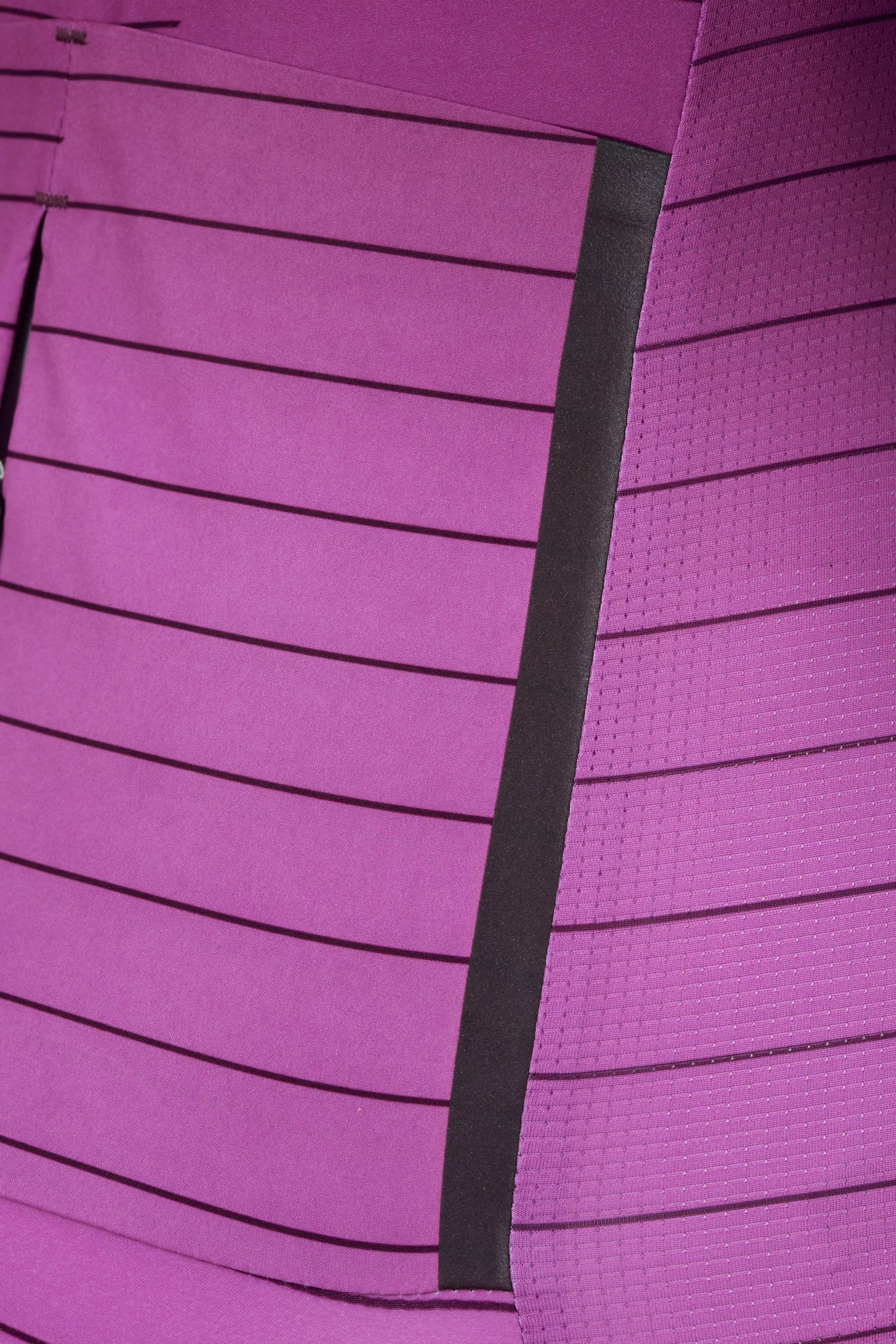 From start to finish, we spared no expense and thought of every detail down to the very last stitch. For the construction, we used our venerable VaporRize™ knit fabrics that provide the optimal blend of moisture management and breathability. We paired this with a compressive performance stretch-knit to give you a fit that's the same as our Evade Skin Suit. Not only this, but the materials we used are incredibly soft against the skin for all-day comfort on the road. And compared to the rest of the SL line, this jersey has some unique features, like our structured back panel and welded "cuffless" sleeve design that improves your aerodynamic profile and overall compressive comfort.
