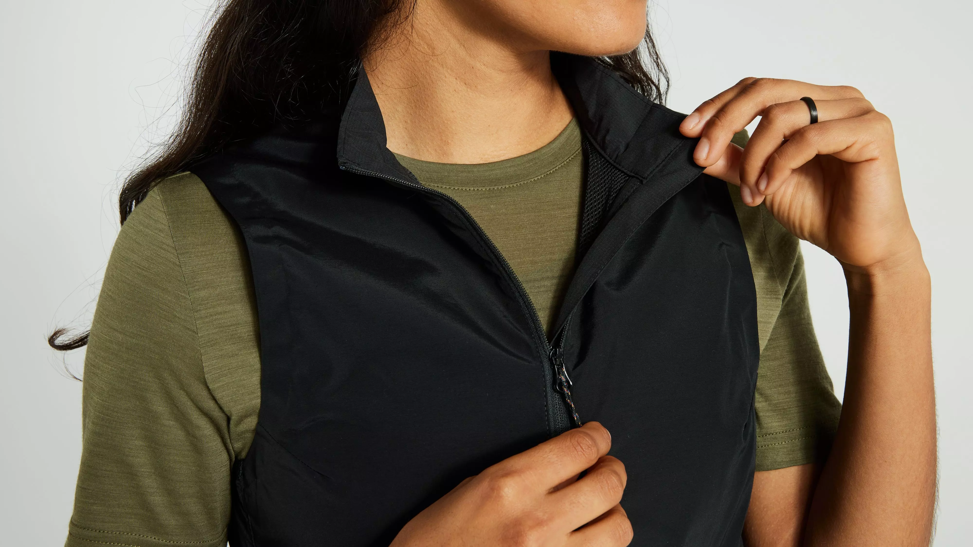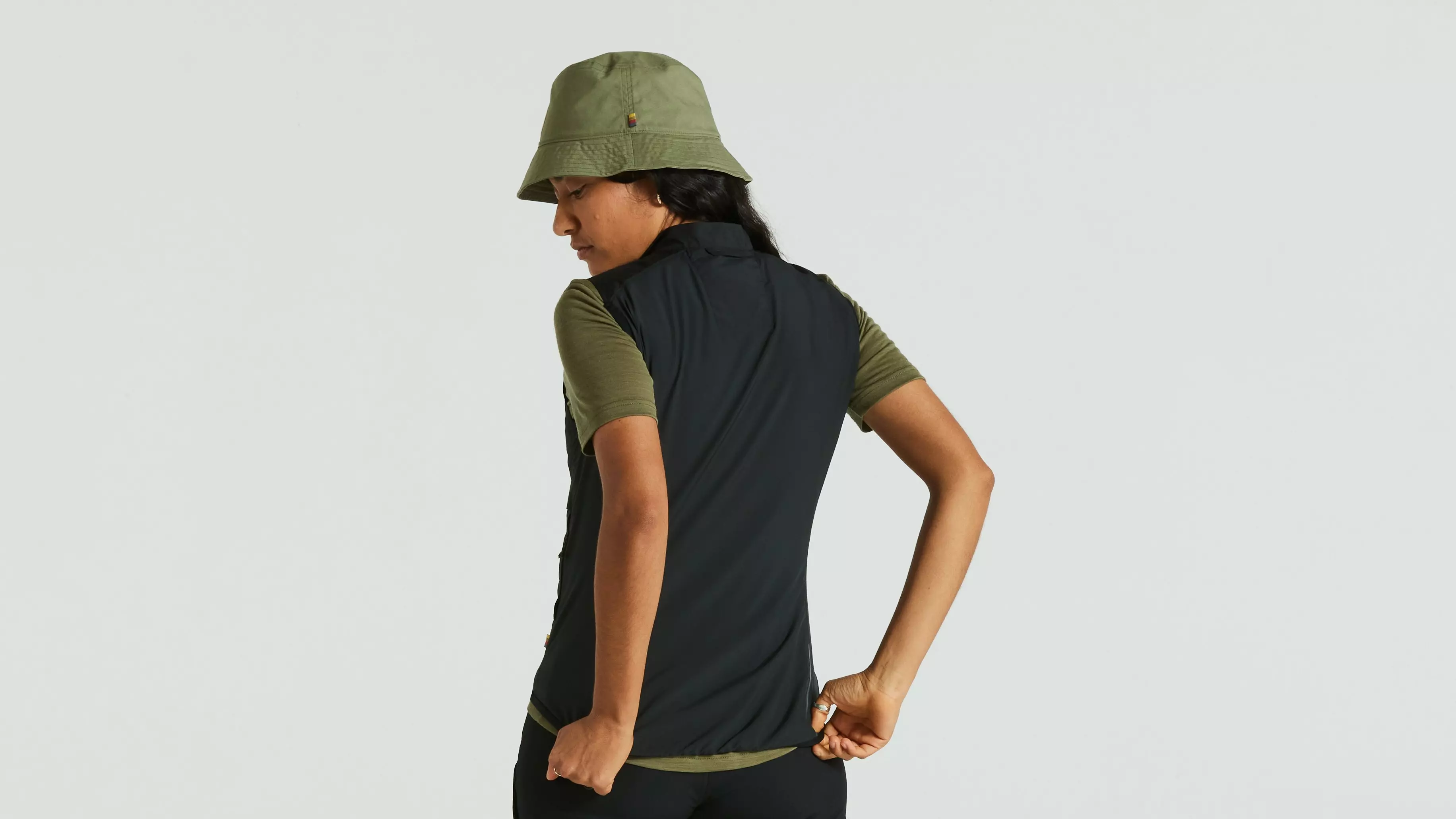 Light and packable vest, optimized for bike riding with a reinforced upper torso providing wind-resistance where it’s most needed. This section is also waxable for even higher wind- and water-resistance. The back and lower front are made from light and durable recycled polyester. High-low hem with elastic back and armholes for a closer fit when riding. Several functional pockets, including two top-loaded pockets and two zippered hand pockets. Can be packed into its own pocket. Great as backup gear on any bike ride. Part of the Specialized/Fjällräven series for urban rides and bikepacking adventures.