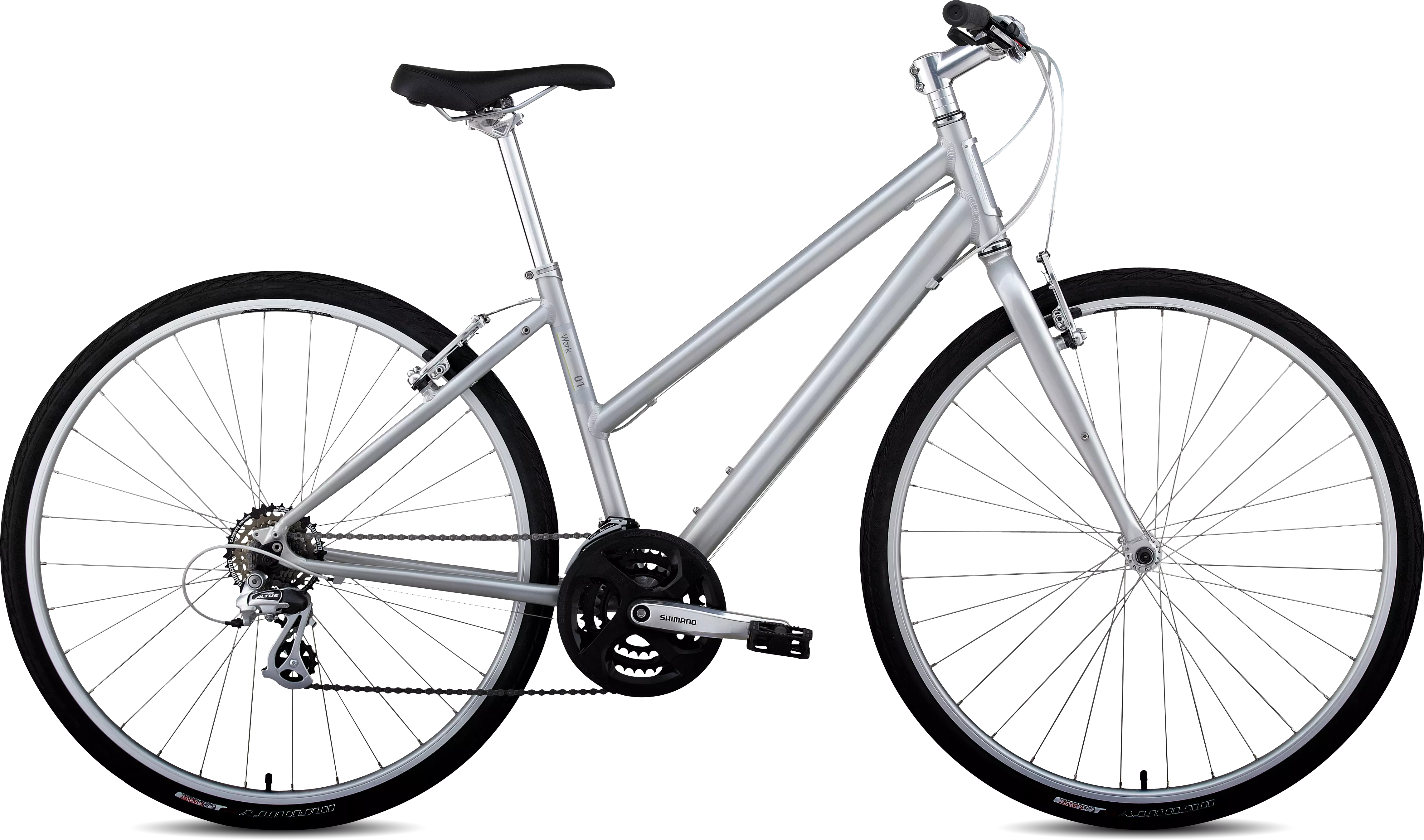 The high-value, no-nonsense Work is perfect for the commuter who wants a light weight bike with an upright position, step-through convenience, predictable handling, and rack/fender mounts for added versatility