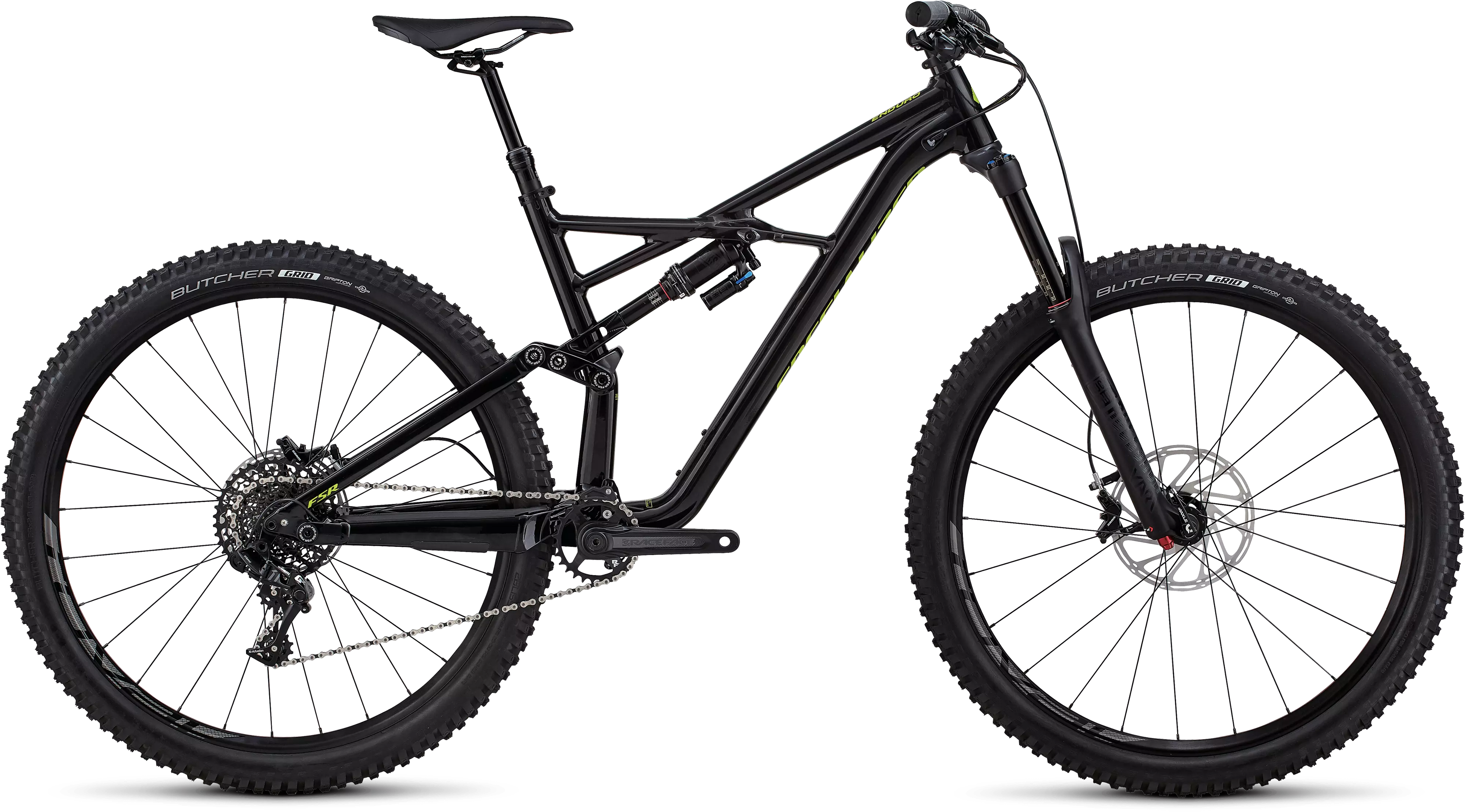 En el montaje, esta Enduro cuenta con transmisión SRAM 1x11, potentes frenos Guide R, ruedas Roval y horquilla RockShox Yari en la parte delantera.