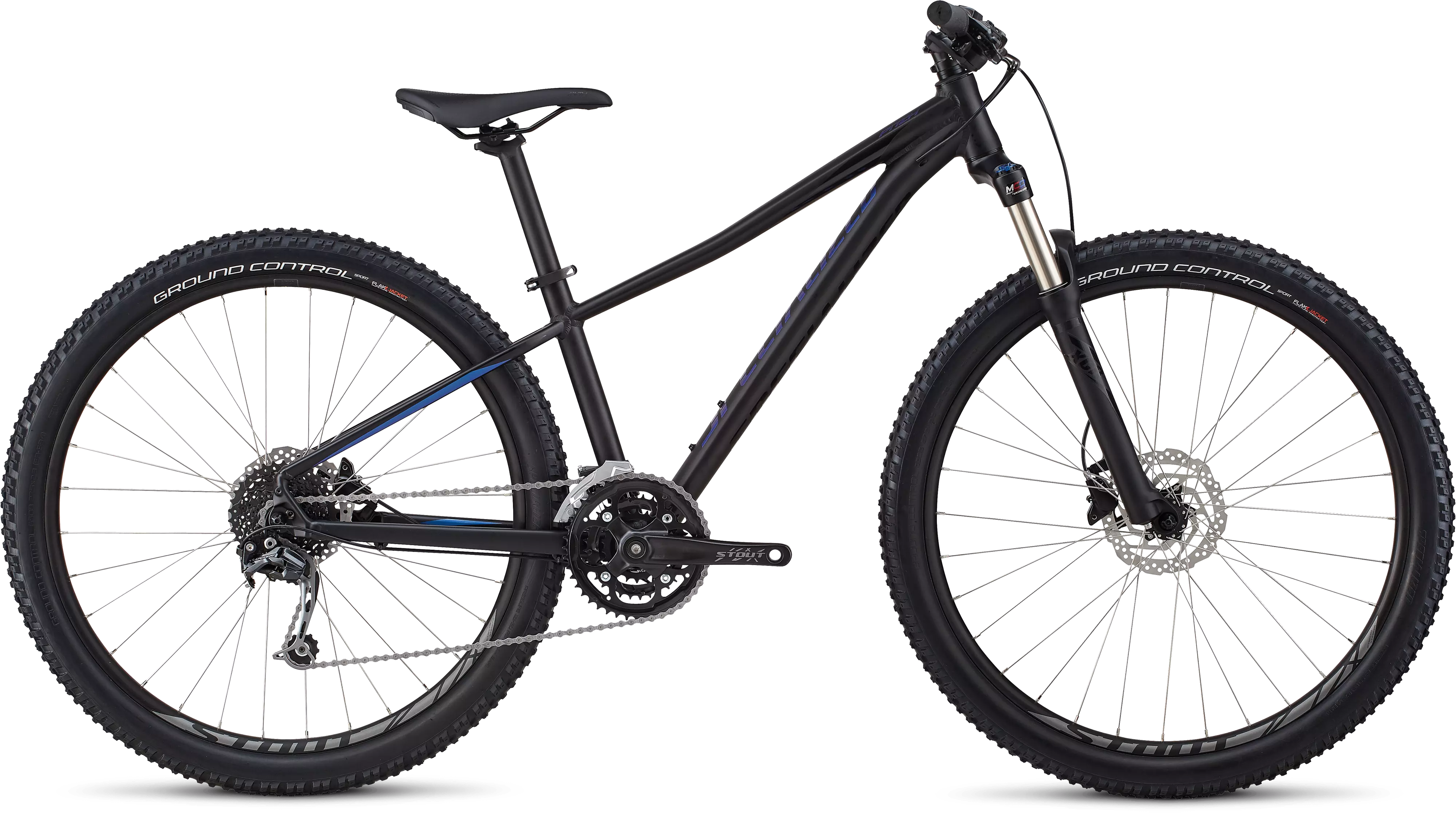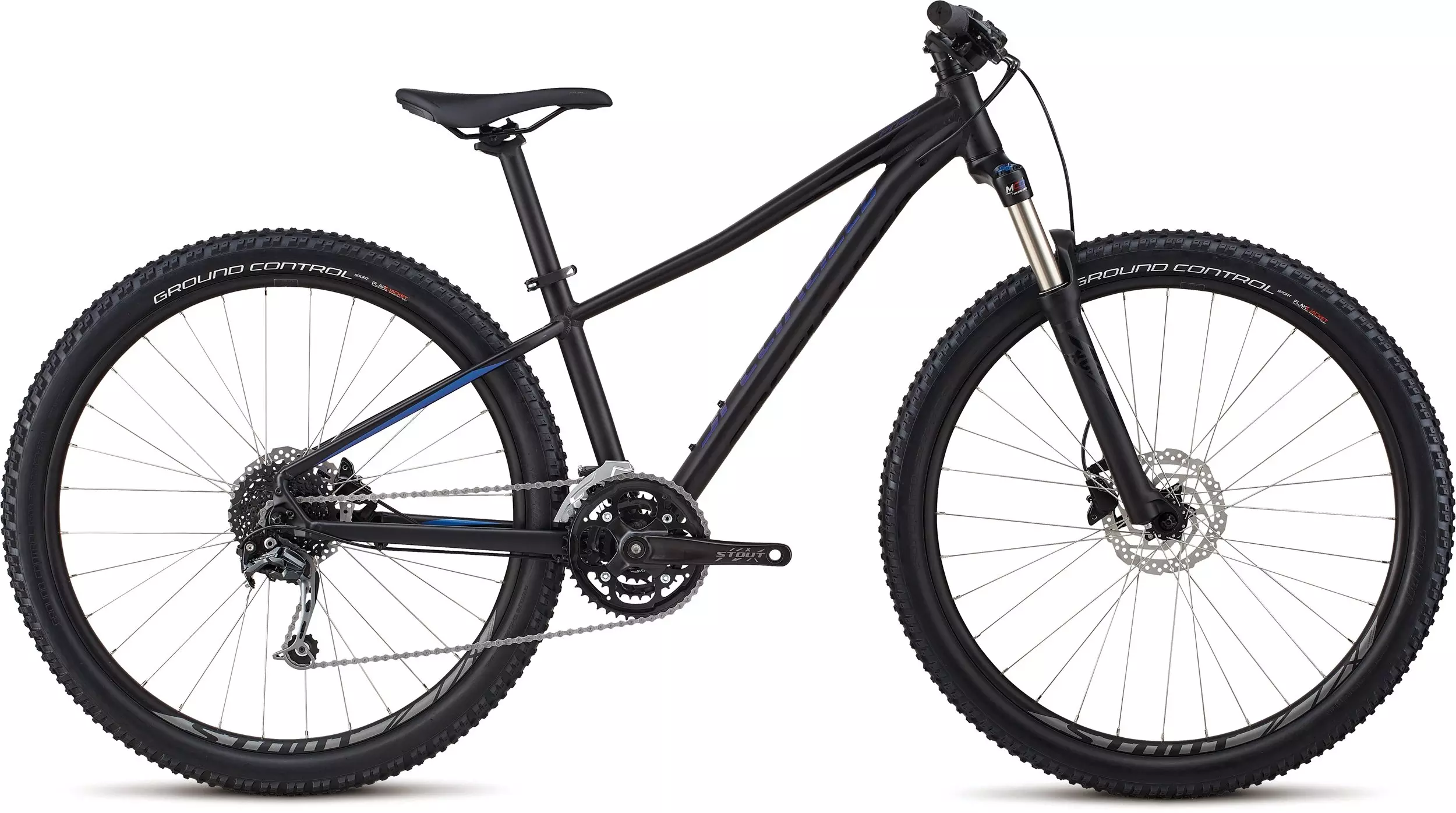A1 Premium Aluminum, Women's Sport Trail 27.5 Geometry, zero-stack head tube, internal cable routing, 135x9mm forged dropouts, chainstay-mounted disc brake, replaceable alloy derailleur hanger