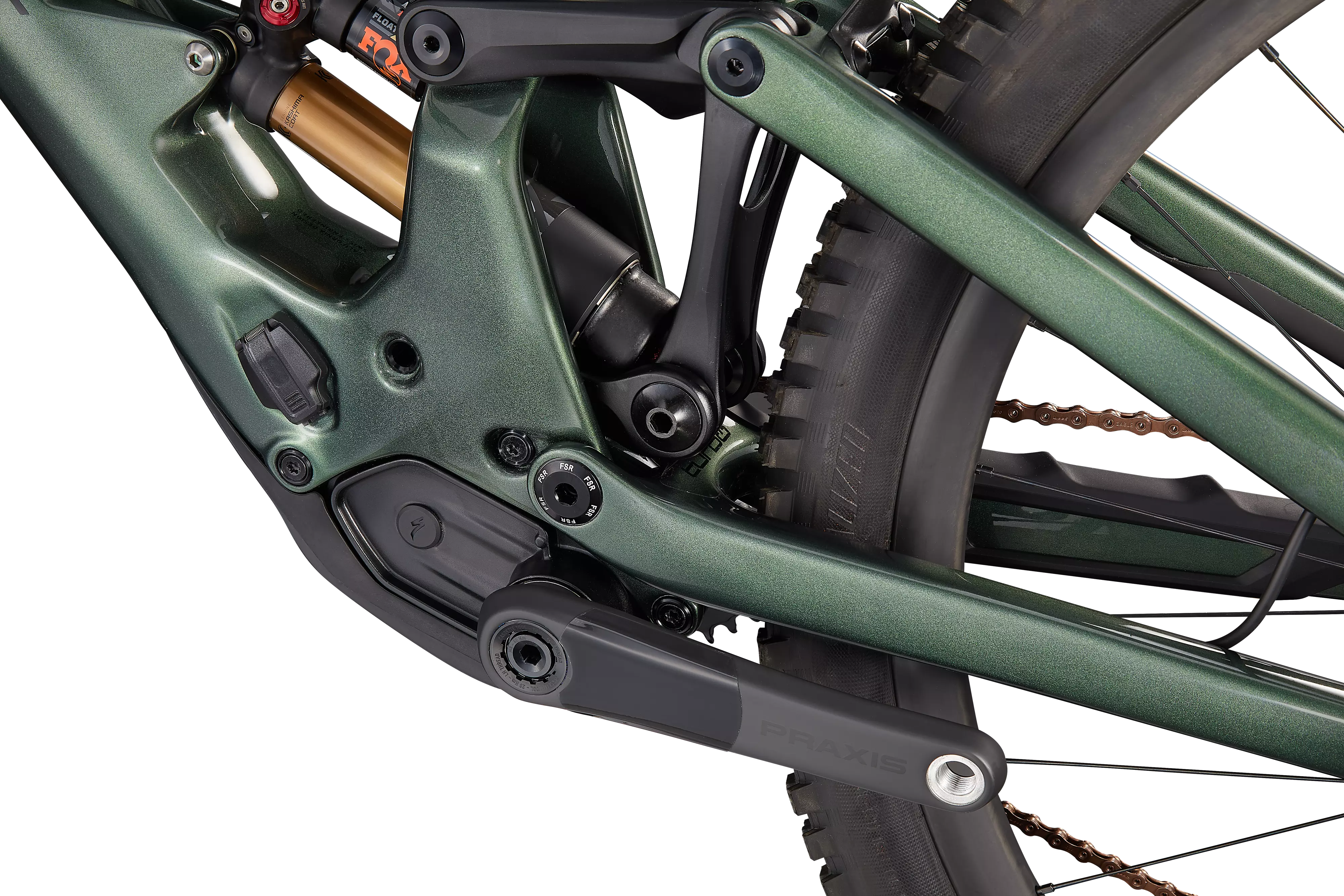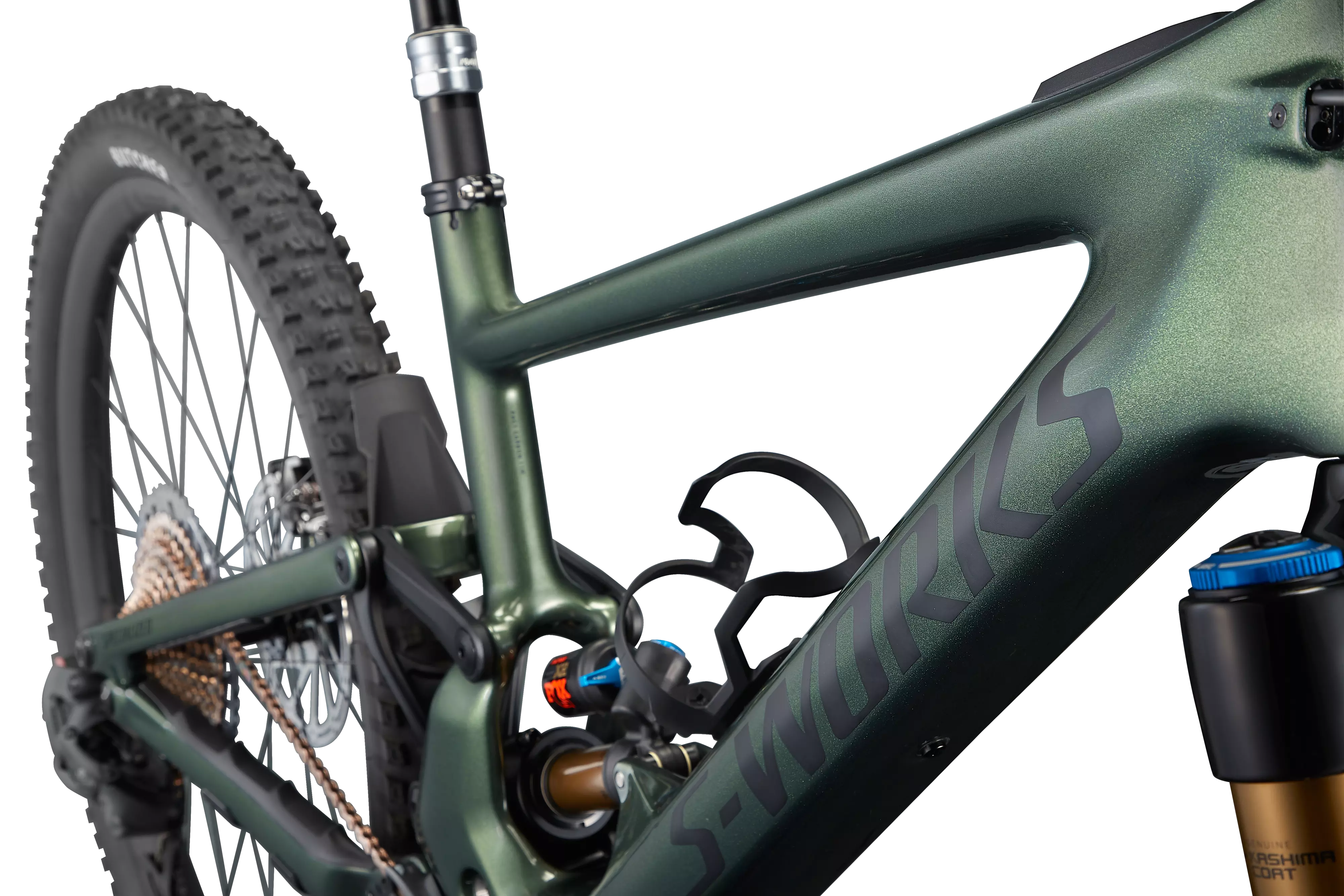 No reparamos en gastos con la S-Works Turbo Kenevo SL: la hemos montado con los mejores componentes disponibles, incluida la transmisión SRAM Eagle AXS XX1 de primer nivel, suspensiones FOX Factory y ruedas Roval Traverse SL superligeras y superresistentes.