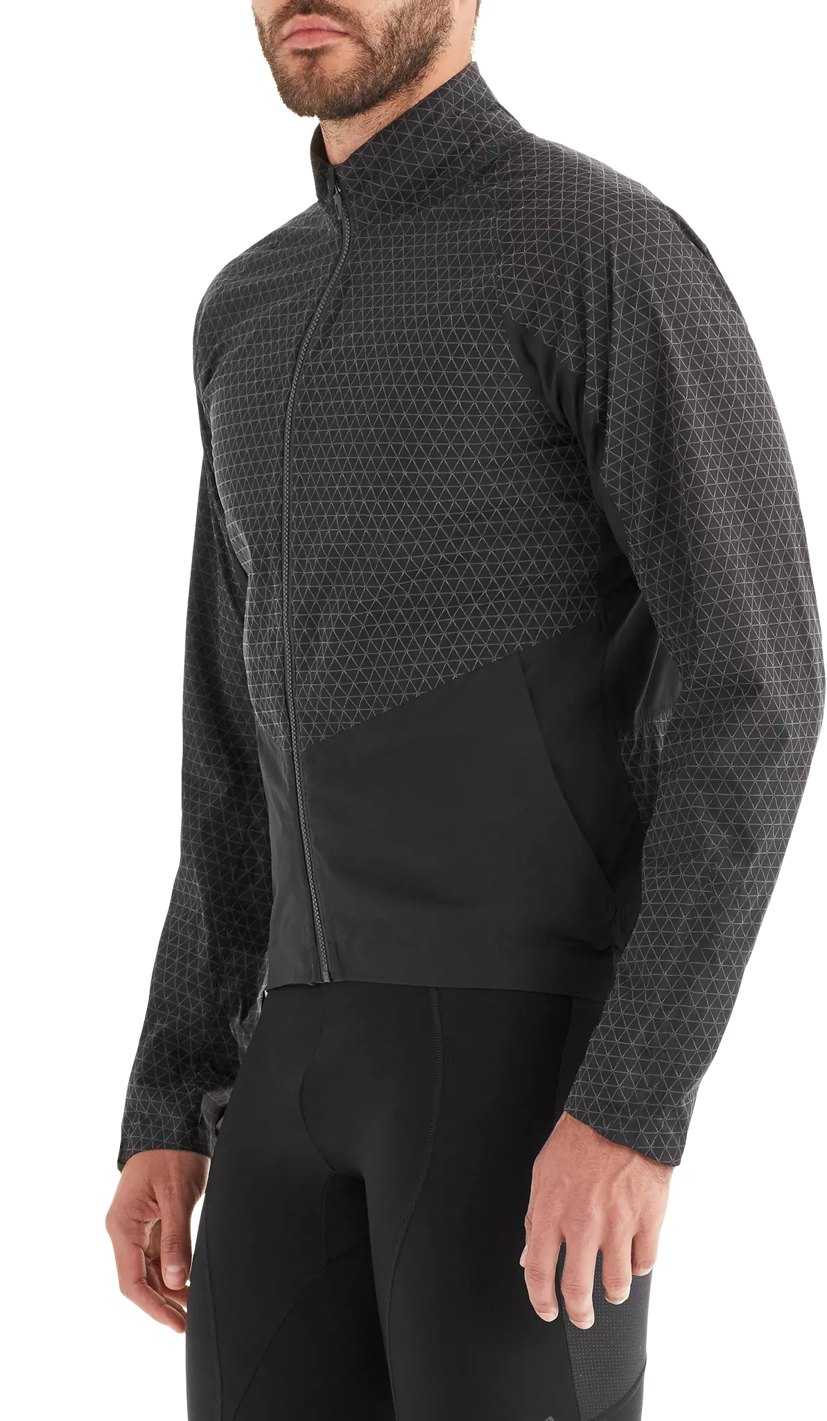 The update to our original Reflect Deflect jacket is a more versitile piece for adverse weather riding. 2-layer fabrics breath better than 3-layer fabrics, but they can feel clammy against your skin. By fusing micro-fleece dots onto the water-proof, breathable membrane, we raise the membrane off your skin, making it more comfortable and creating micro channels to allow air flow, aiding in breathability. We call the fabric innovation 2.75 layer and we give it our H2O treatment of taped seams and YKK AquaGuard® Zippers. The geometric reflective pattern is composed of millions of microscopic glass beads that reflect light back to the source, making you visable from 360°. Dark and stormy nights don't have to be the start of horror movies anymore.