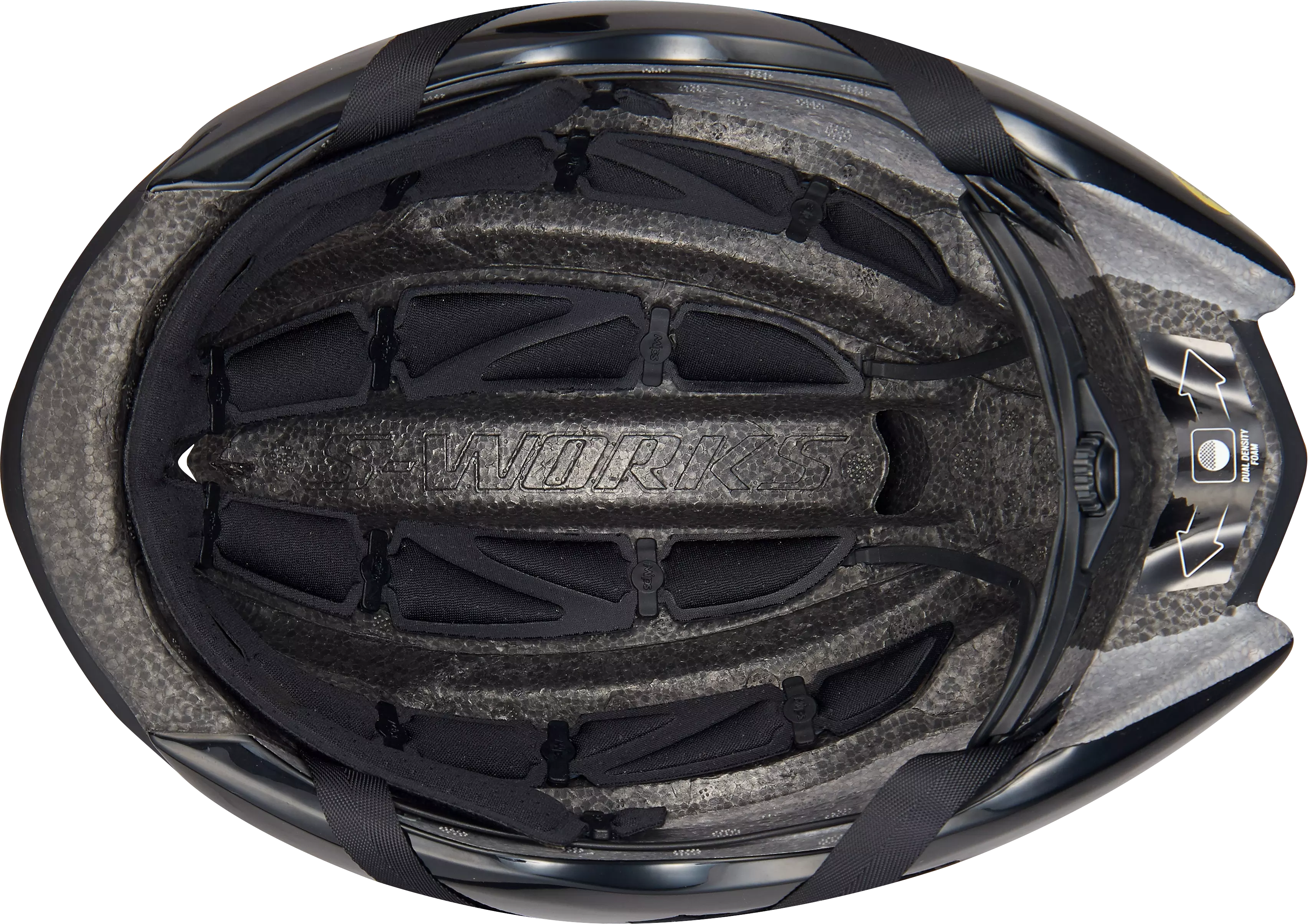 Last, but most certainly not least, a fast helmet is useless unless it fits correctly. With this in mind, the new S-Works Evade has all the features you'd expect from a top-level helmet, like our Mindset HairPort 2 fit system with micro-adjustments, our soft webbing that won't stretch out, and a new Gutter Action brow pad that manages sweat to keep it out of your eyes. And to top it off, we've added a new magnetic buckle to the mix that makes buckling with one hand a breeze.