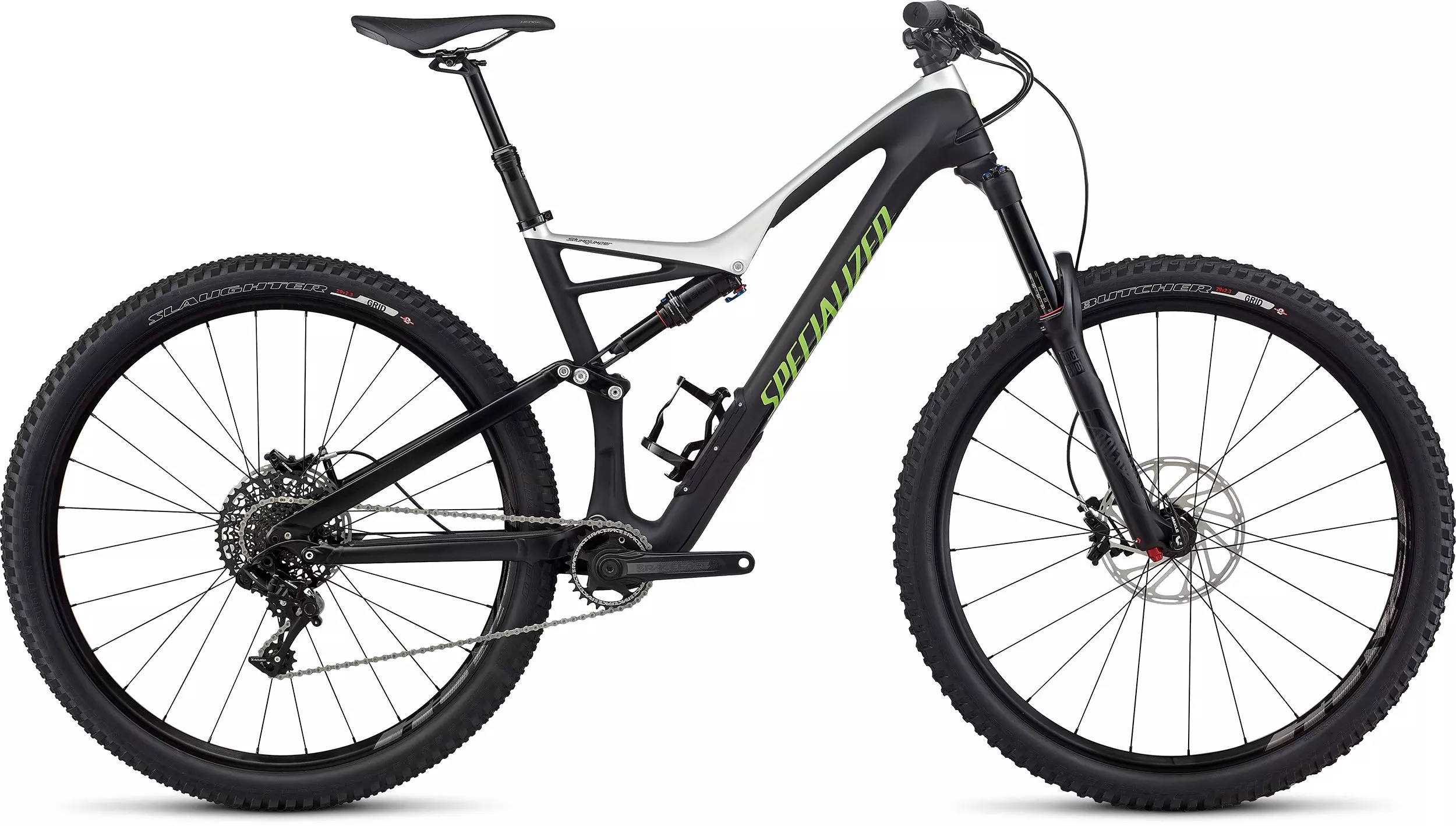 Riding trail requires a bike that can do it all with ease, take some hits, and be ready to come back for more. And when it comes to this, nothing outperforms our new Stumpjumper FSR Comp Carbon 29. It features a durable set of SRAM components, hand-selected to ensure that you get the most performance over rugged terrain possible. At the frame, you'll find our FACT 9m carbon fibre Trail chassis with an M5 alloy rear end that creates a lightweight, strong, and stiff construction. The carbon molding process also allowed us to revolutionize how you carry your trail essentials with the all-new SWAT™ Door found at the down tube. This compartment will fit a tube, a tool, and pump without rattling or compromising the structural integrity of the frame. And when you factor in our proprietary Rx Trail Tune at the shock, plus an aggressive, trail-eating geometry that features ridiculously short chainstays, a roomy top tube, a low bottom bracket, and a slacked out front end, you have a bike that's going to eat up the trail and ask for seconds.
