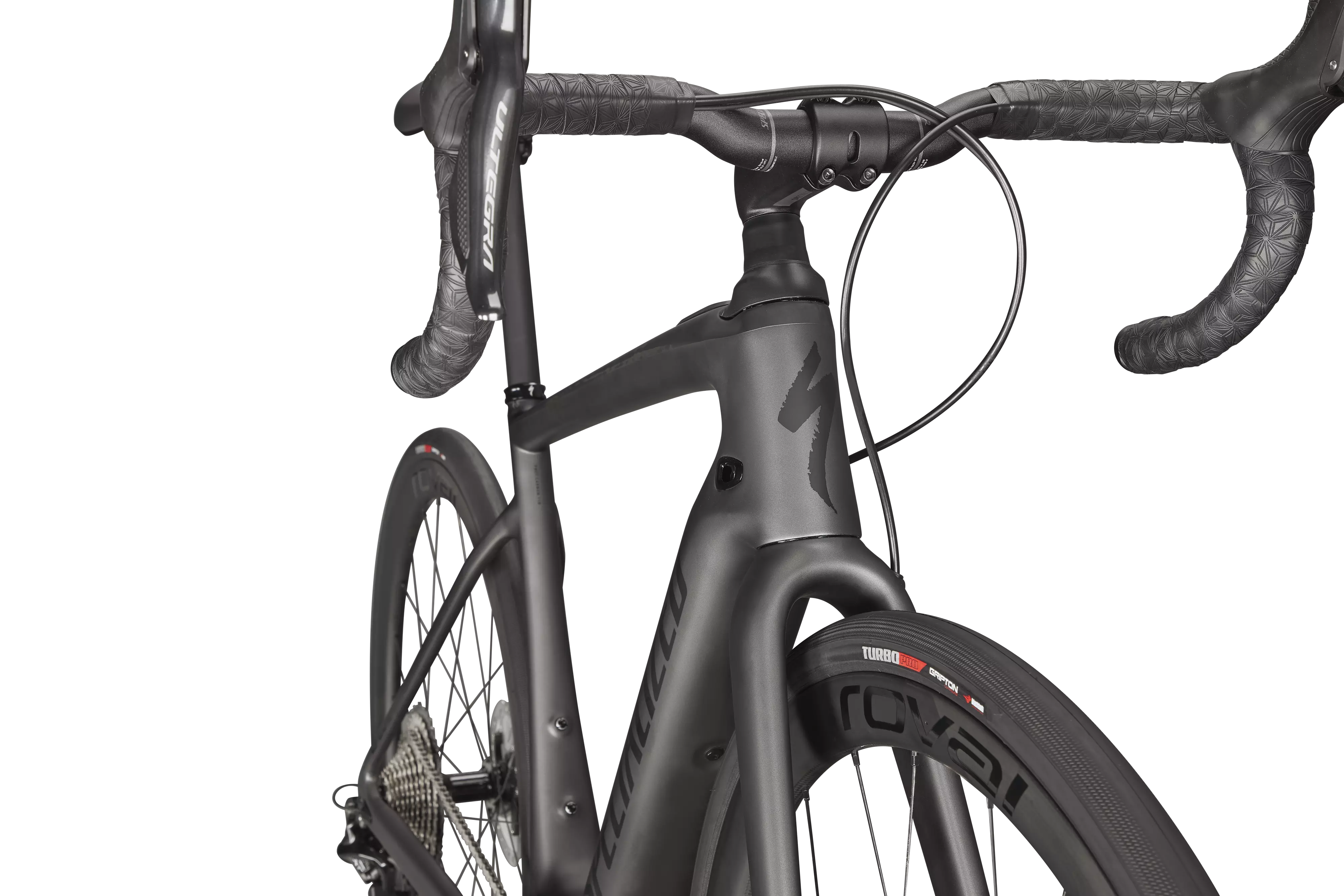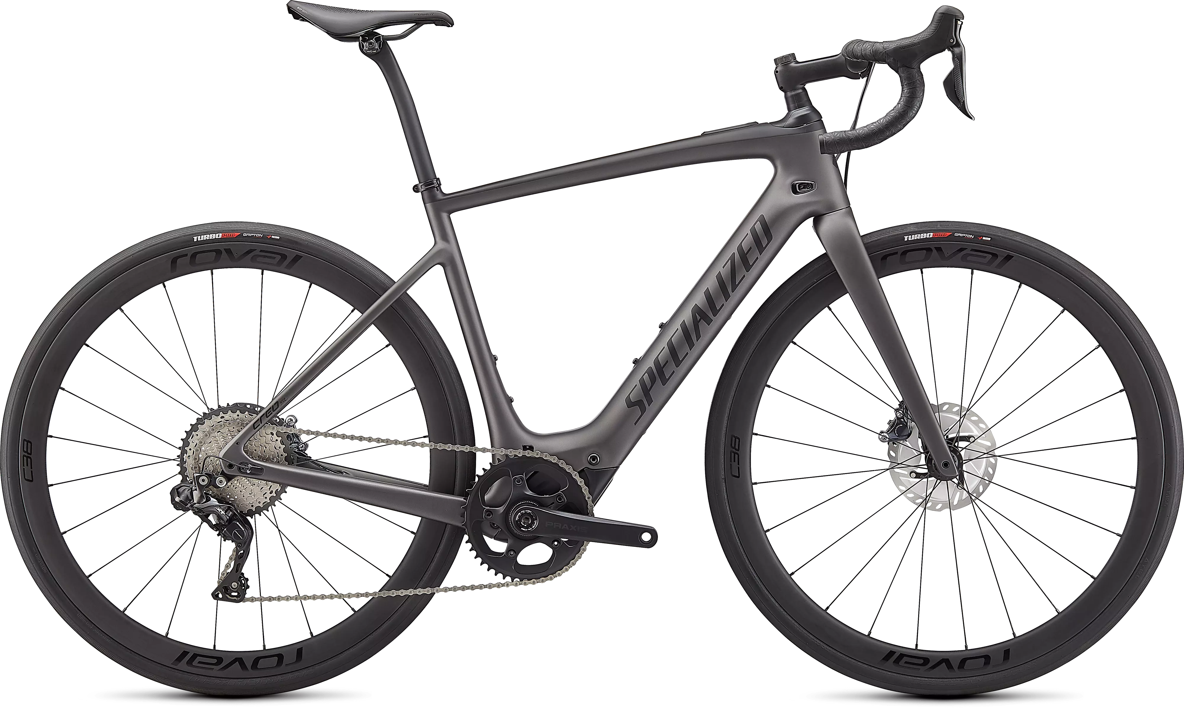 The Turbo Creo SL Expert features out Fact 11r carbon chassis. Yes, that's the same one on the S-Works model, and you'll also get the new Future Shock 2.0. For the spec, we included a 1x Shimano Ultegra Di2 build with an XT rear derailleur and an 11-42t cassette to take on shifting and braking duties, while Roval C 38 Disc carbon wheels get wrapped in 30mm Turbo Pro tires to keep you rolling worry-free and super fast. And filling out the build are our Future Stem Pro, alloy Expert Hover bars, and our fan-favorite Body Geometry Power Expert saddle.