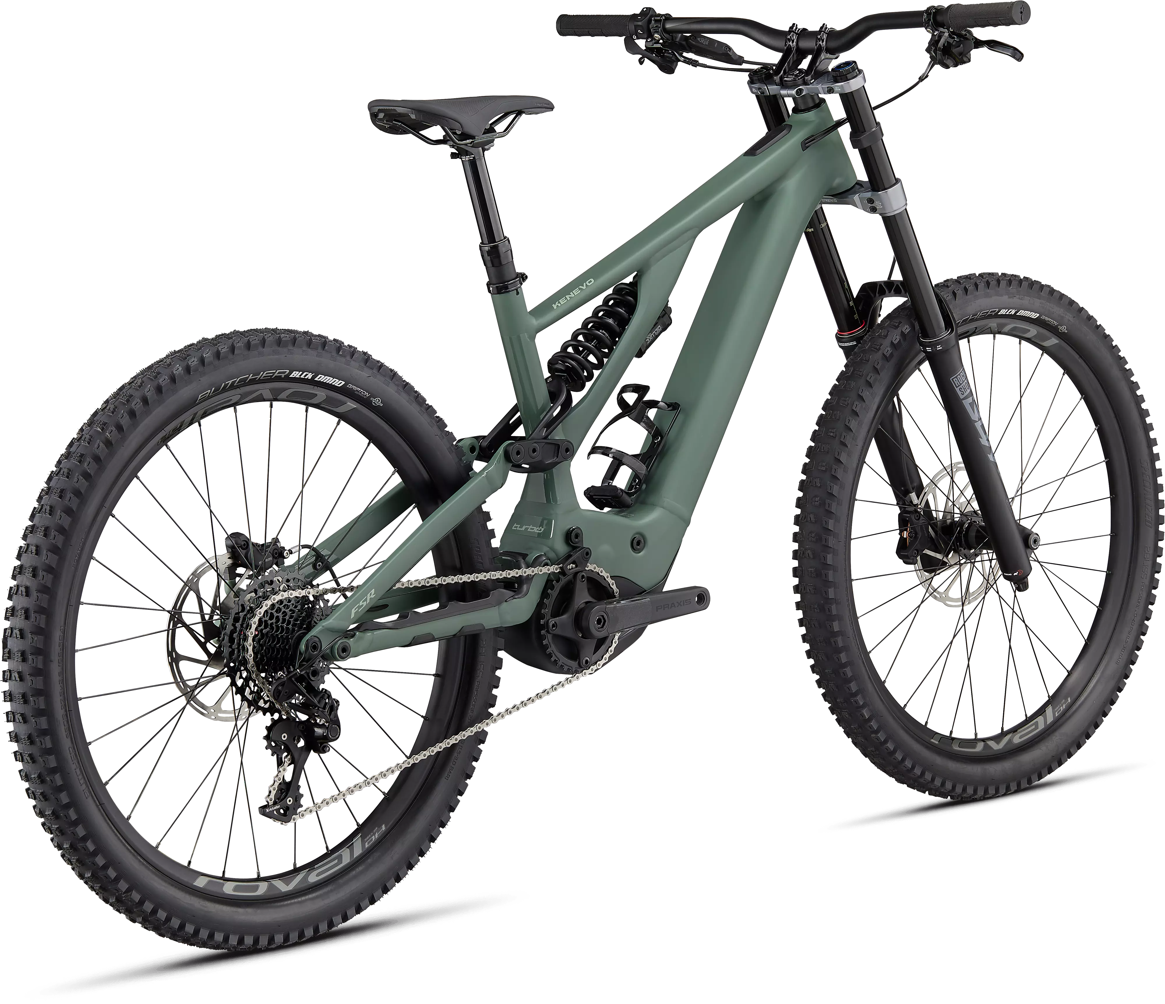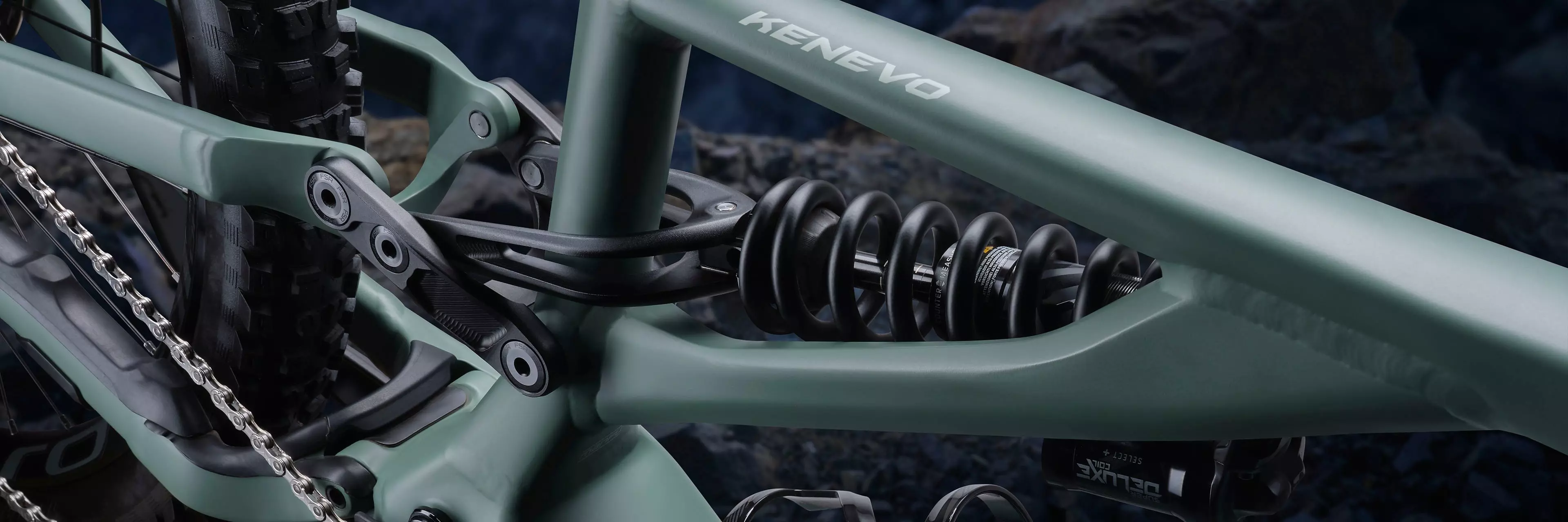The completely redesigned alloy Kenevo frame features an M5 alloy front- and rear-end, an asymmetrical Sidearm design, and a new axle path and leverage curve that give the bike insane levels of control in the most challenging trails.